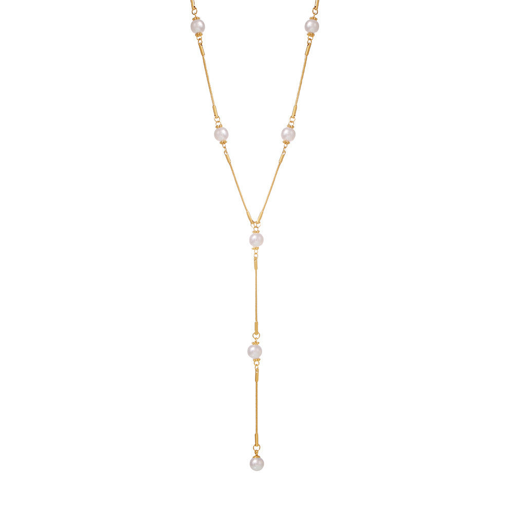 Stainless Steel Pearl Y-shaped Clavicle Chain Light Luxury Tassel Necklace For Women