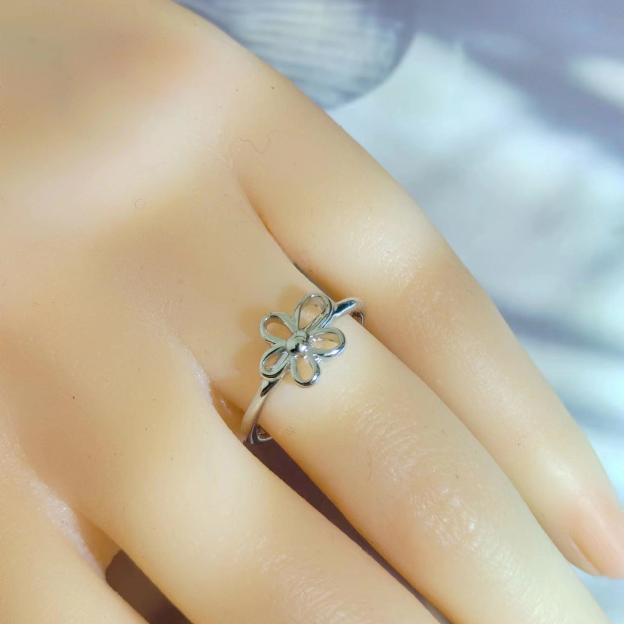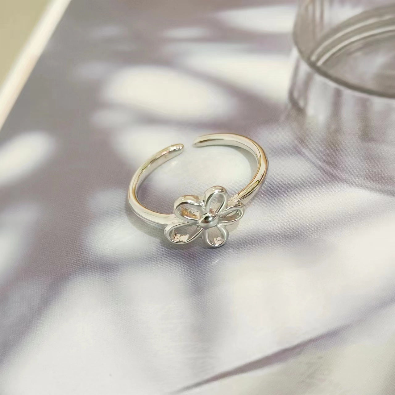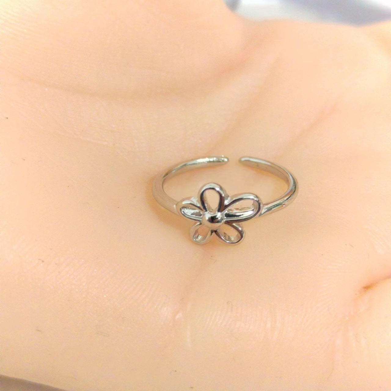 Thai Silver Sweet And Simple Hollow Silver Small Flower Open Index Finger Ring